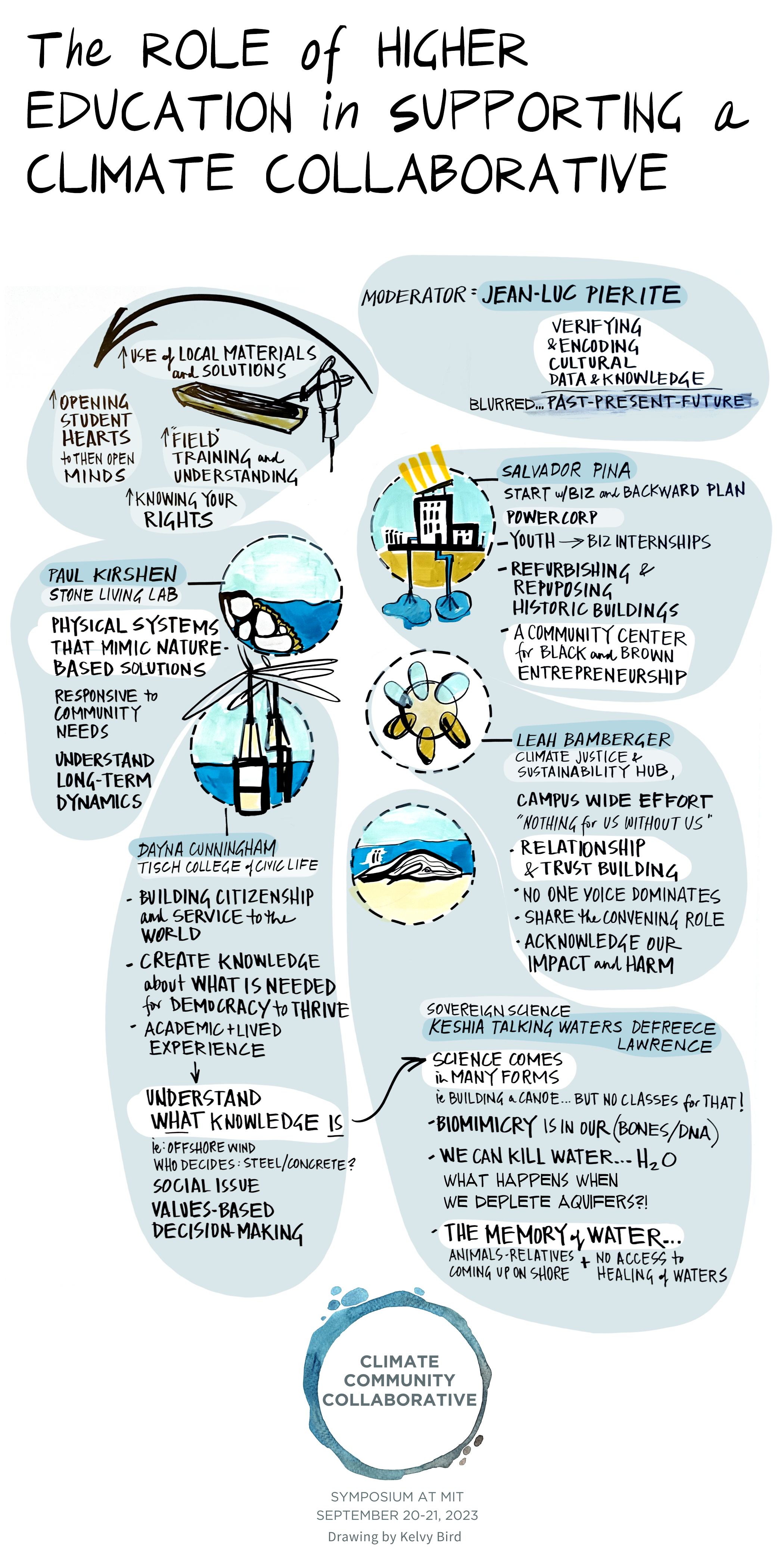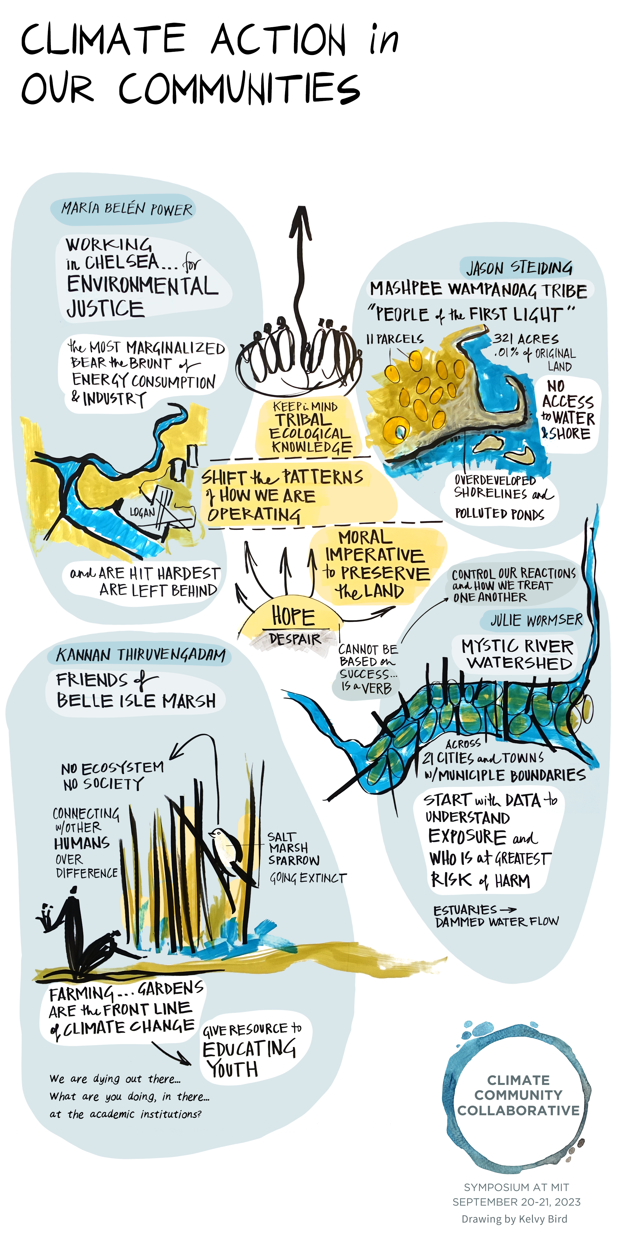 It was a formal way for collaboration and knowledge-sharing among various local climate experts - academic, operations, industry, policy, and community-based leaders. This symposium was an opportunity for initial listening and dialogue via exploration of what is already taking place in the greater Boston area and where additional collaboration is needed. Notably, members of local tribes attending requested that we host a broader collective of the regional tribes at MIT to establish relationships, re-envision Indigenous and academic engagement, and develop co-design frameworks for climate change adaptation, TEK-STEAM convergence, and data sovereignty.